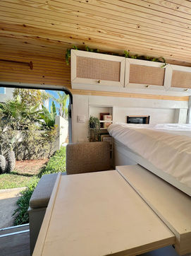 Grâce à ses panneaux solaires reliés à des batteries, le van est 100% autonome en énergie, parfait pour des escapades en pleine nature. La décoration sobre et minimaliste apporte une ambiance épurée et apaisante, idéale pour se ressourcer. Que ce soit pour une journée ou un road trip prolongé, ce van est votre compagnon idéal pour explorer les routes du Maroc en toute sérénité.